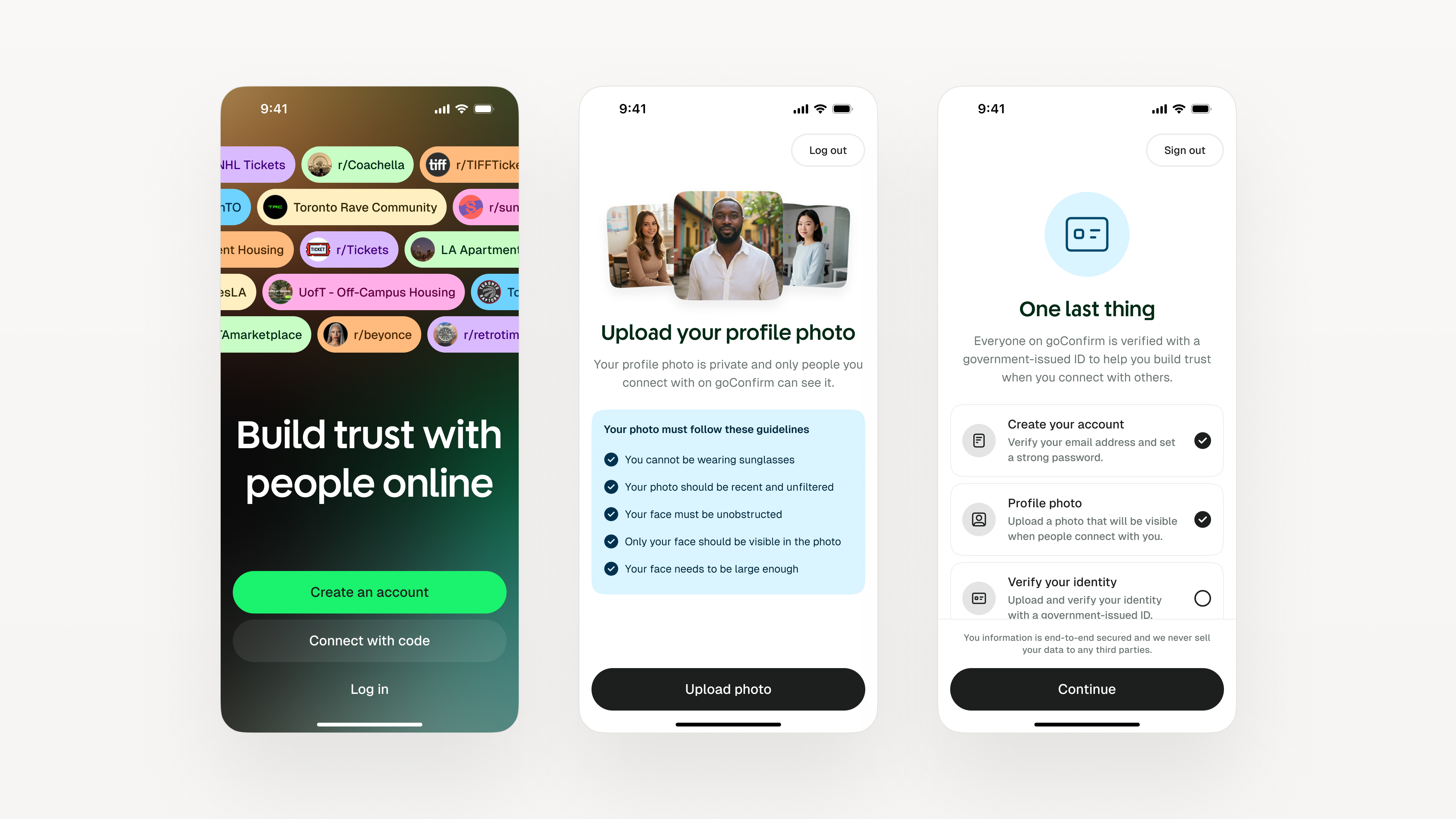 Asking consumers who may have never heard of you to sign up for your app by uploading photos of their driver's licence or passport and taking a selfie requires a lot of trust. For goConfirm's onboarding experience, we consistently experimented with a) the order in which information was requested, b) our choice of words, and c) what information was disclosed to the user and when.